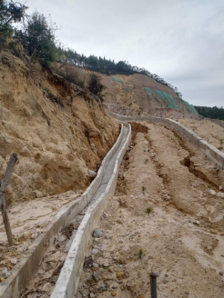 礦區(qū)水文地質(zhì)條件屬簡單類型,大氣降水為采場充水的主要來源;采用的山坡露天臺階開采,可自然排水。因此礦山防排水方案簡單。礦山采用的山坡露天臺階開采,各臺階可自然排水。礦山采場防水方式按照設(shè)計(jì)在采場外圍挖設(shè)有截洪溝,坡度根據(jù)實(shí)際地形而定且均大于1%。水溝斷面為漿砌梯形結(jié)構(gòu),規(guī)格為:下寬0.3~0.4m、上寬0.5~0.6m、深0.4m。采場排水良好,防洪溝設(shè)置能滿足實(shí)際排水需求。