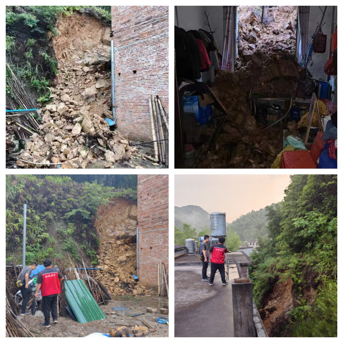 6月3日,吉村鎮(zhèn)突發(fā)短時強降雨。16時23分,災害風險隱患信息報送員黃宗鵬巡查時,發(fā)現(xiàn)張家然、蔡光楊、蔡光松等3戶農戶屋后坡體不穩(wěn)定,有發(fā)生崩塌的危險,迅速向鎮(zhèn)領導報告。接報后,鎮(zhèn)政府于16時30分通知民主村村干部,要求立即轉移受威脅住戶。民主村兩委干部在接到轉移通知后,迅速協(xié)同村江壩小組干部,動員3戶10人轉移,16時45分人員轉移完成。17時40分左右,3農戶屋后坡體發(fā)生崩塌。崩塌體橫向寬約10米,縱向長約6米,厚度約2米,崩塌體方量約120立方米,導致張家然房屋窗戶及室內物品損壞。由于隱患發(fā)現(xiàn)與報告及時、轉移處置及時,未造成人員傷亡。崩塌發(fā)生后,因崩塌點仍處于不穩(wěn)定變形中,鎮(zhèn)政府決定在現(xiàn)場拉好警戒線,樹立警示牌,禁止無關人員進出,并安排群測群防員24小時監(jiān)測。
